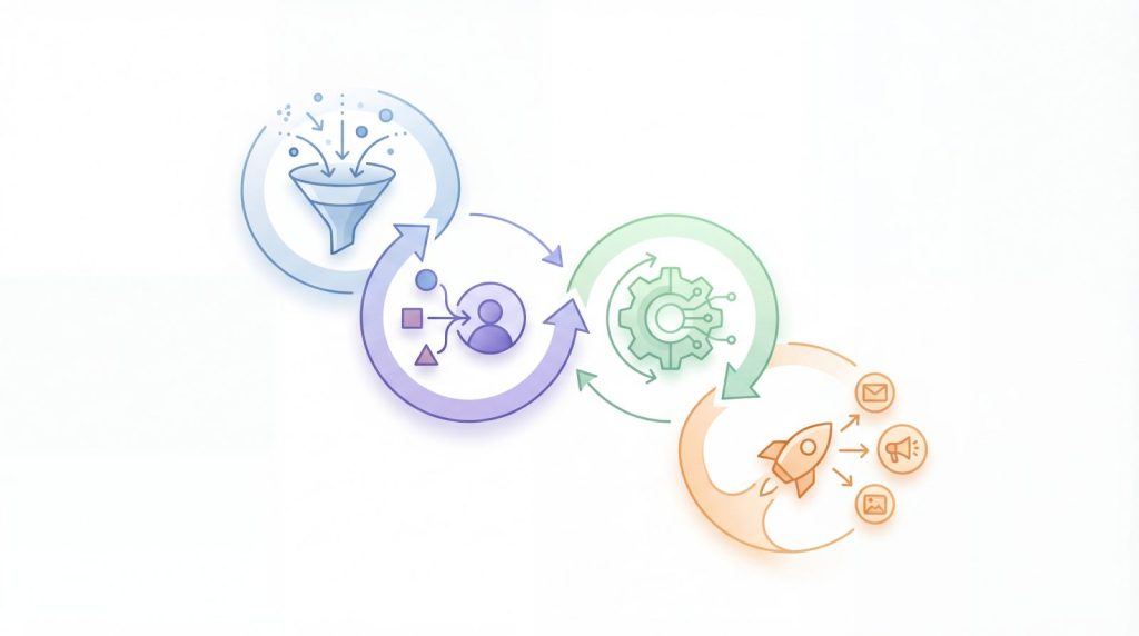 結論から言えば、CDPは「収集・統合・加工・連携」という4つの機能が一連のサイクルとして連動することで、顧客一人ひとりの全体像を炙り出し、マーケティング施策の精度を高める役割を担います。各機能は独立して存在するのではなく、互いに補い合いながら顧客理解を深めていく設計になっています。