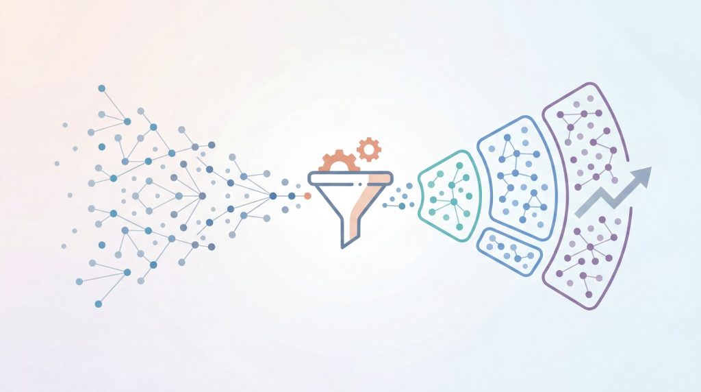 機械学習を用いた予測モデルの活用により、離脱防止やアップセル対象の特定が容易になります。たとえば、LTV(顧客生涯価値)が高くなる見込みの顧客を優先的にフォローする、RFM分析で優良顧客を抽出して特別なオファーを提示するといった、データに基づいた戦略的な施策が可能になります。
