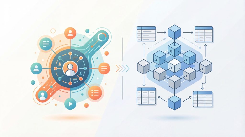 CDPは顧客プロファイルを中心にデータを管理します。Cookieやメールアドレスをキーとして、一人の顧客に紐づくあらゆる行動データを統合し、顧客像を立体的に描き出します。データ構造は顧客軸で最適化されており、「この人はどんな行動をしたか」を即座に把握できる設計です。