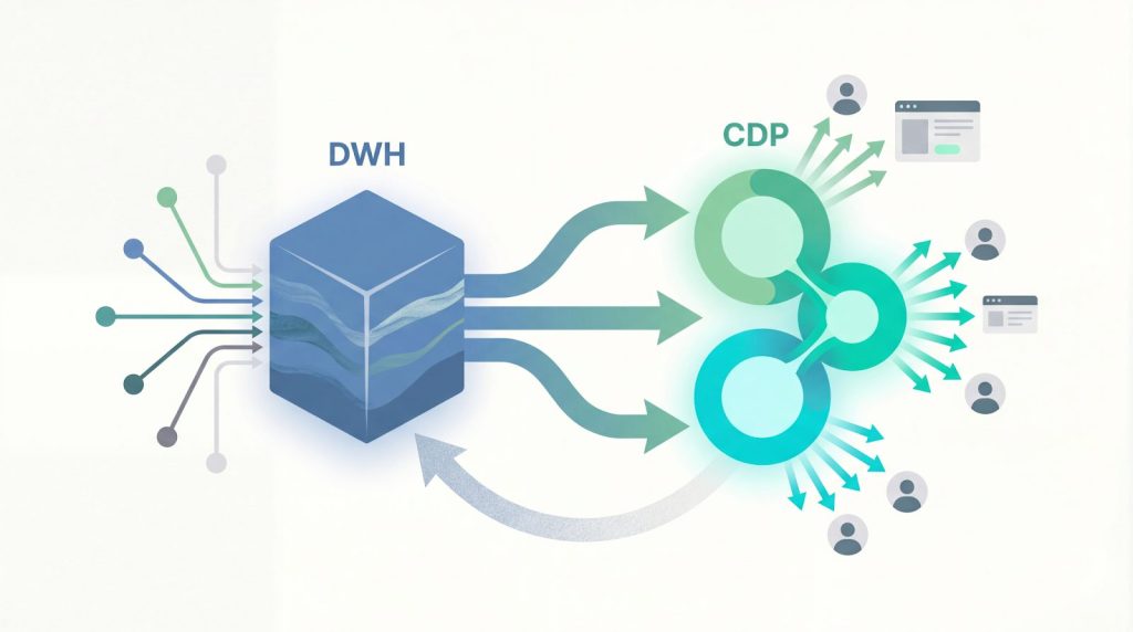 DWHを分析基盤、CDPを施策層として組み合わせる「いいとこ取り」の設計が、理想的なデータ活用の形です。DWHで全社データを統合管理し、必要な顧客データのみをCDPに渡して施策を高速化する併用により、高度な分析とパーソナライズ施策を同時に実現できます。