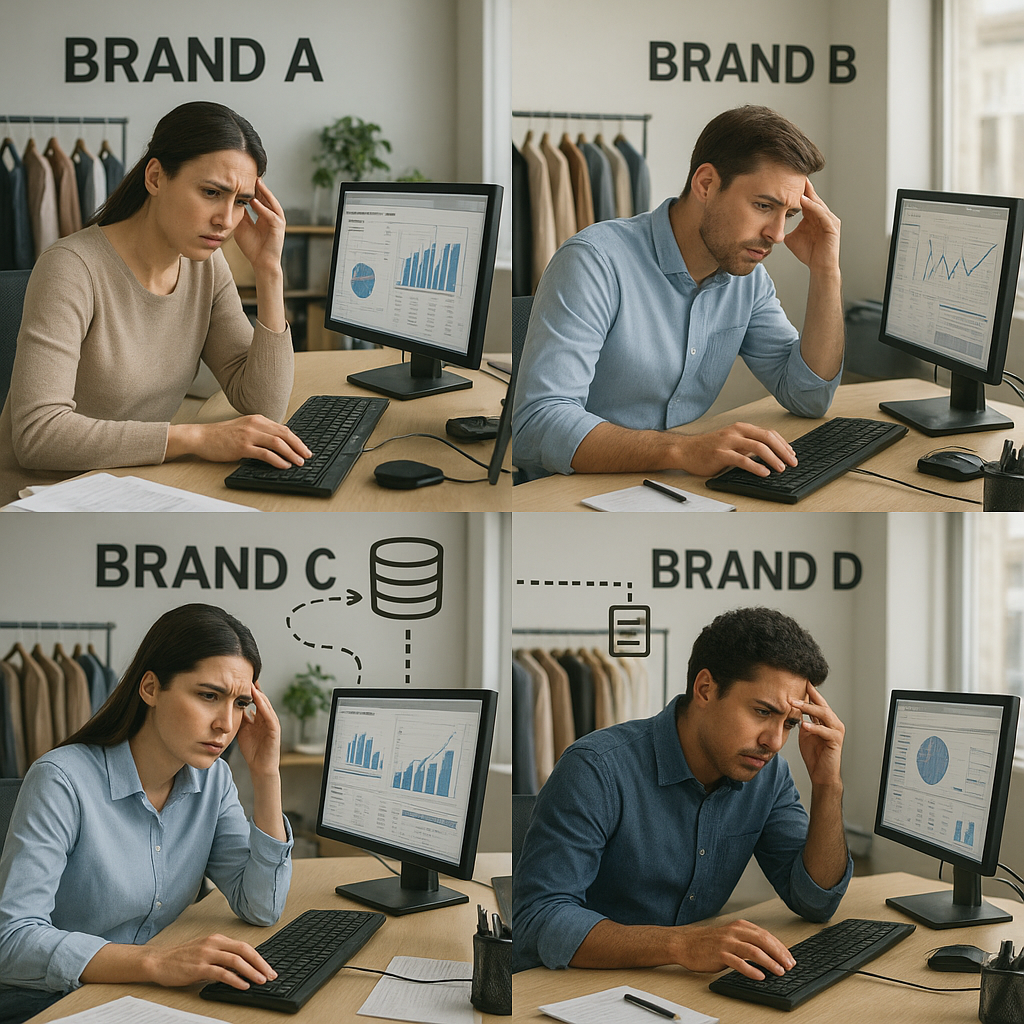 複数のブランドを展開するアパレル企業では、各ブランドが独立した店舗運営を行っており、それぞれが異なるシステムでデータを管理しているケースが多くあります。