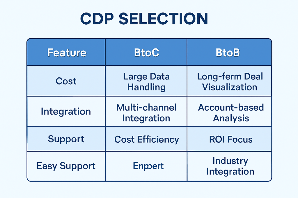 業界によって、CDP選定時に重視すべきポイントは異なります。以下の表で確認しましょう。