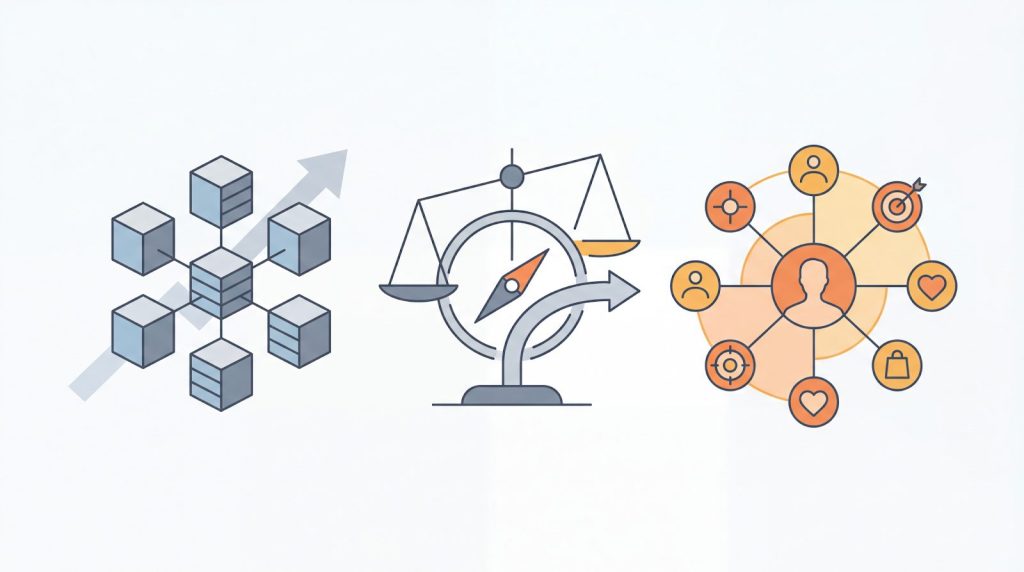 自社の課題が「データ品質の統制」にあるのか「マーケティング活用の高速化」にあるのかを見極め、適切な導入順序を選ぶことが重要です。データ品質に深刻な課題があればMDMを優先し、顧客体験の向上が急務であればCDPを先行させる。リソースが限られる場合は、最低限のMDM整備とCDPでの小規模検証を並行させる段階的アプローチも有効です。