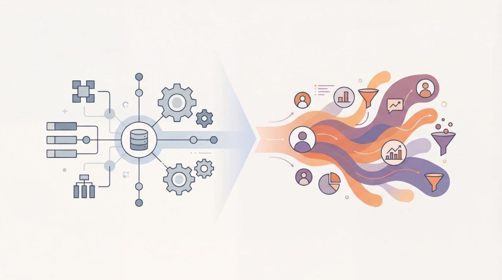 一方、CDPが扱うのは、Webサイトの閲覧履歴、アプリ内行動、購買履歴、メール開封履歴といった「行動データ」です。これらは顧客一人ひとりの接点ごとに発生する動的な情報であり、時系列で蓄積されていきます。