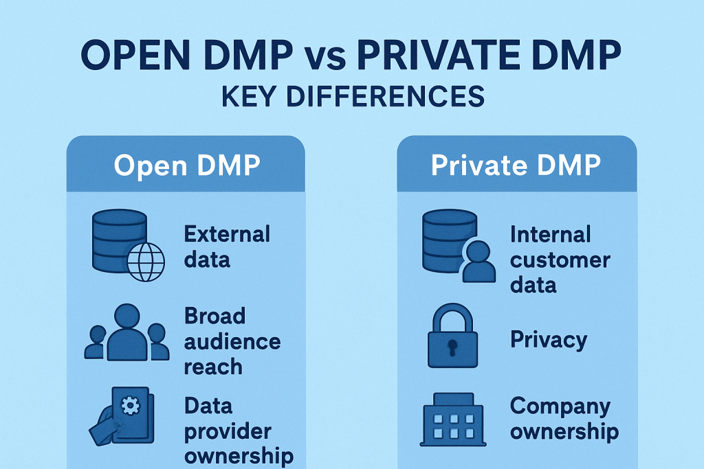 DMPの導入を検討する際、もう一つ理解しておくべきポイントがあります。それは、DMPには大きく分けて「オープンDMP」と「プライベートDMP」の2種類が存在するということです。