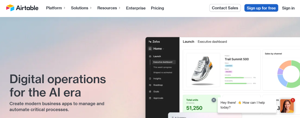 Airtableは、45万以上の組織で利用されている米国発のクラウドデータサービスです。データベースを利用したアプリ作成をサポートし、AIを活用したワークフロー構築機能も備えています。