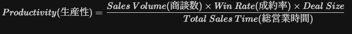 SFAという基盤にAIが統合されることで、企業の生産性は以下の数式のように定義し直されます。