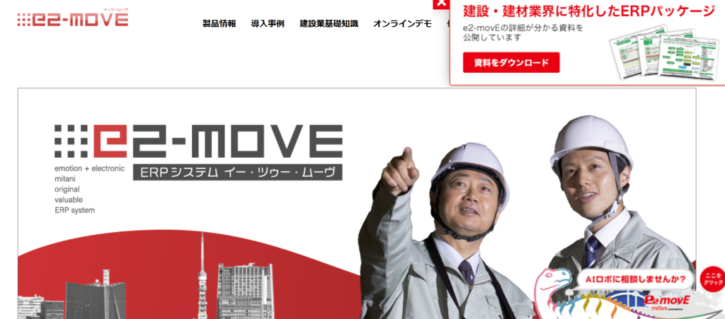 e2movEは、ローコストかつ短納期での運用を実現する建設・工事業向けERPパッケージです。モバイル対応が可能となっており、現場からのデータ入力の利便性に優れた原価管理システムです。