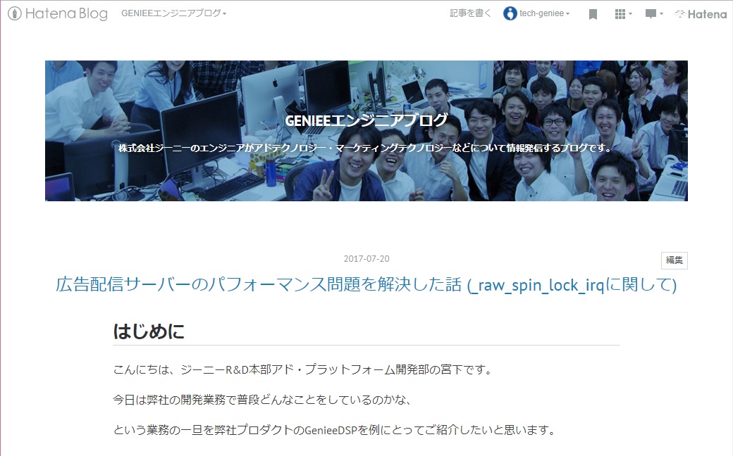 ジーニーでは、これまで主に社内行事や制度、社員インタビュー等に関する記事を通じて、社風を知っていただくためのコーポレートブログを運営してきました。しかし、従業員の1/3強はエンジニアであり、弊社の強みの1つは「技術開発力」であるにも関わらず、開発の様子や技術についてお伝えする機会は限られていました。