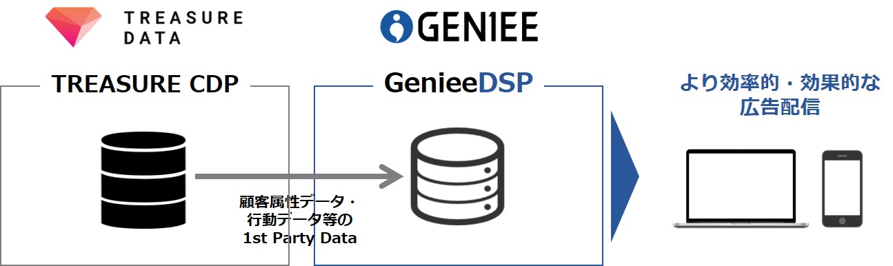 この度のデータ連携により、「GenieeDSP」を利用している広告主様は、「TREASURE CDP」に蓄積している会員情報などのファーストパーティデータを活用し、より効率的で効果の高い広告配信が可能となります。