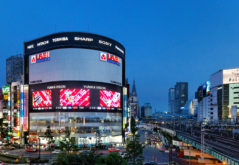 ユニカは日本最大級のLED100㎡×3面の大型LEDビジョンと全長52mに及ぶ文字放送用ビジョンの複合型屋外デジタルサイネージ「YUNIKA VISION」を所有しています。広告代理店業務のほか、不動産ソリューションの提供、レジャー・アミューズメント施設ビルなどの運営管理などを行っています。