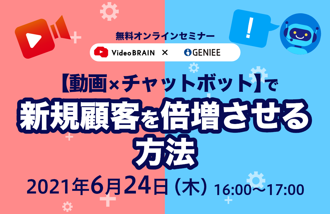 株式会社ジーニー(本社:東京都新宿区、代表取締役社長:工藤智昭、以下ジーニー)は、動画自動生成ソフト「Video BRAIN」を提供する株式会社オープンエイト(本社:東京都渋谷区、代表取締役社長兼CEO:髙松雄康、以下オープンエイト)と、無料オンラインセミナー「【動画×チャットボット】で新規顧客を倍増させる方法」を2021年6月24日(木)に開催いたします。