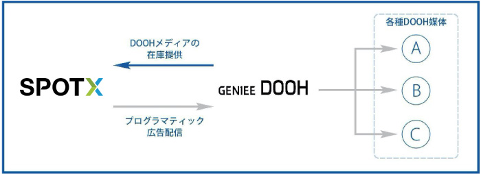 株式会社ジーニー(本社:東京都新宿区、代表取締役社長:工藤智昭、以下ジーニー)が日本で開発・運営するデジタル屋外広告(DOOH: Digital Out of Home)プラットフォーム「GENIEE DOOH」は、SpotX Japan合同会社(本社:東京、カントリーマネージャー:原田健、以下 SpotX,Inc)が運営する動画広告配信プラットフォーム「SpotX」と新たに連携を開始しました。