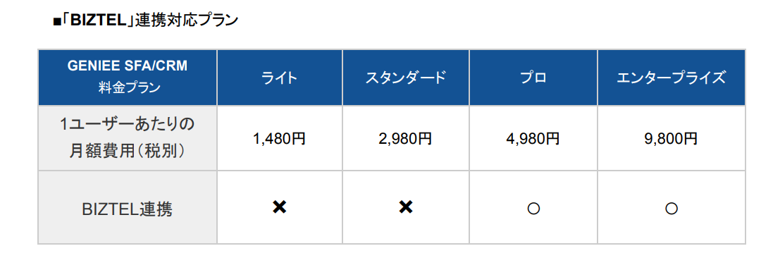 ■「BIZTEL」と「GENIEE SFA/CRM」連携について