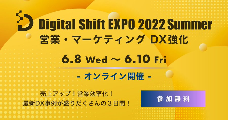 株式会社ジーニー(本社:東京都新宿区、代表取締役社長:工藤智昭、以下ジーニー)は、2022年6月8日(水)~10日(金)に開催されるオンライン展示会「Digital Shift EXPO 2022 summer 営業・マーケティング DX強化」(主催:株式会社アイエンター)に出展いたします。