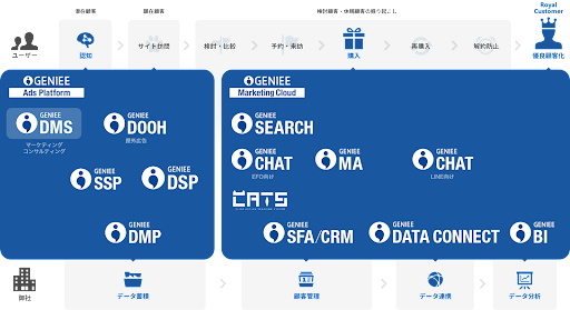 「マーケティングSaaS事業」においては、CRM(顧客管理)/SFA(営業管理)システム「GENIEE SFA/CRM」、マーケティングオートメーション「GENIEE MA」、チャット接客ツール「GENIEE CHAT」、サイト内検索・ECサイト向け商品検索サービス「GENIEE SEARCH」、アフィリエイト広告などの効果測定及びEC事業社向けの広告測定ツール「CATS」などを展開しております。