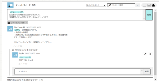 ※「統制」権限が付与されているユーザーは他のメンバーが投稿したコメントも編集・削除が可能です。