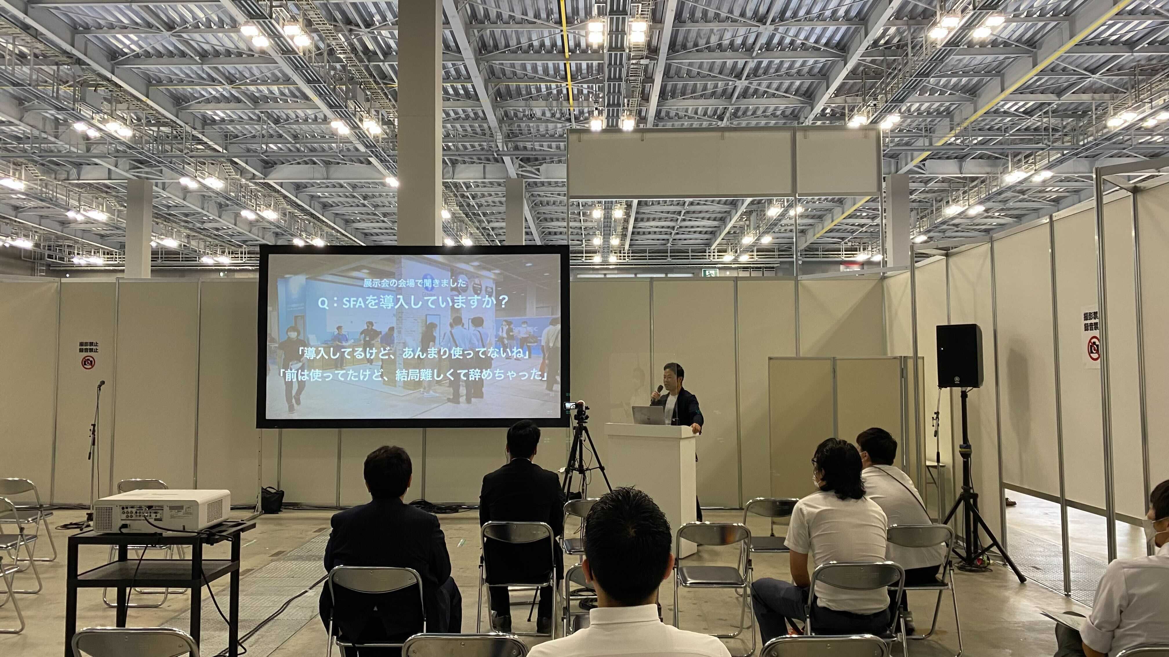 8/25〜8/26に東京ビッグサイト 東7ホールで開催された展示会「フロントオフィスDXPO東京」(主催:ブティックス株式会社)に出展し、その中でセミナーに登壇しました。本展示会は質の高い顧客サービスを提供するために避けて通れない営業のDX化を、実現する専門展です。