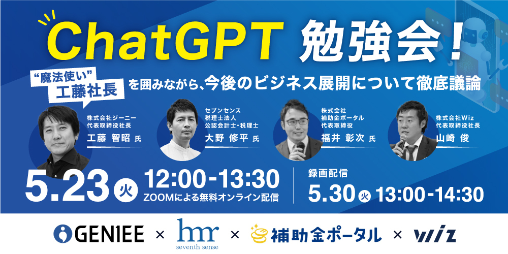 5月23日(火)、5月30日(火)に開催されるChat GPT活用に関するウェビナー(主催:株式会社Wiz)に当社代表取締役社長の工藤が出演します。