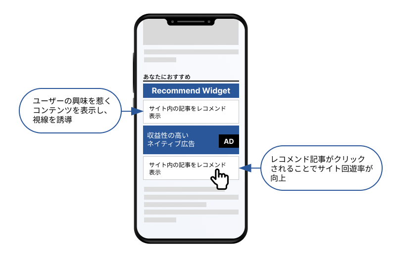ユーザーがより関連性の高いコンテンツに接することで、ウェブサイトの回遊率が向上します。表示されるコンテンツは基本的にサイト内のコンテンツであるため、コンテンツへのクリックが発生することで回遊性が向上します。