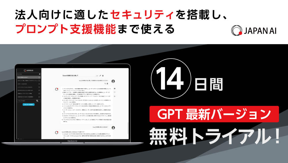 「JAPAN AI Chat(™)」を14日間無料でお試しいただけます。