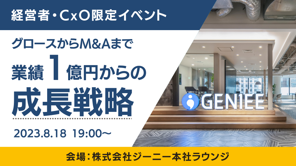 株式会社ジーニー(本社:東京都新宿区、代表取締役社長:工藤智昭、以下ジーニー)は、8月18日(金)に経営者・CxO限定イベントを当社ラウンジにて開催します。