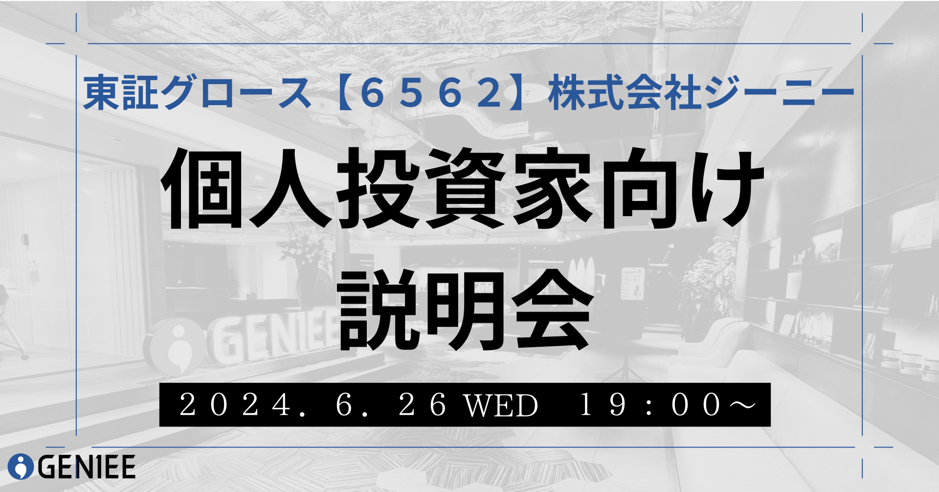 株式会社ジーニーは2024年6月26日(水)に、個人投資家向けの会社説明会を開催します。