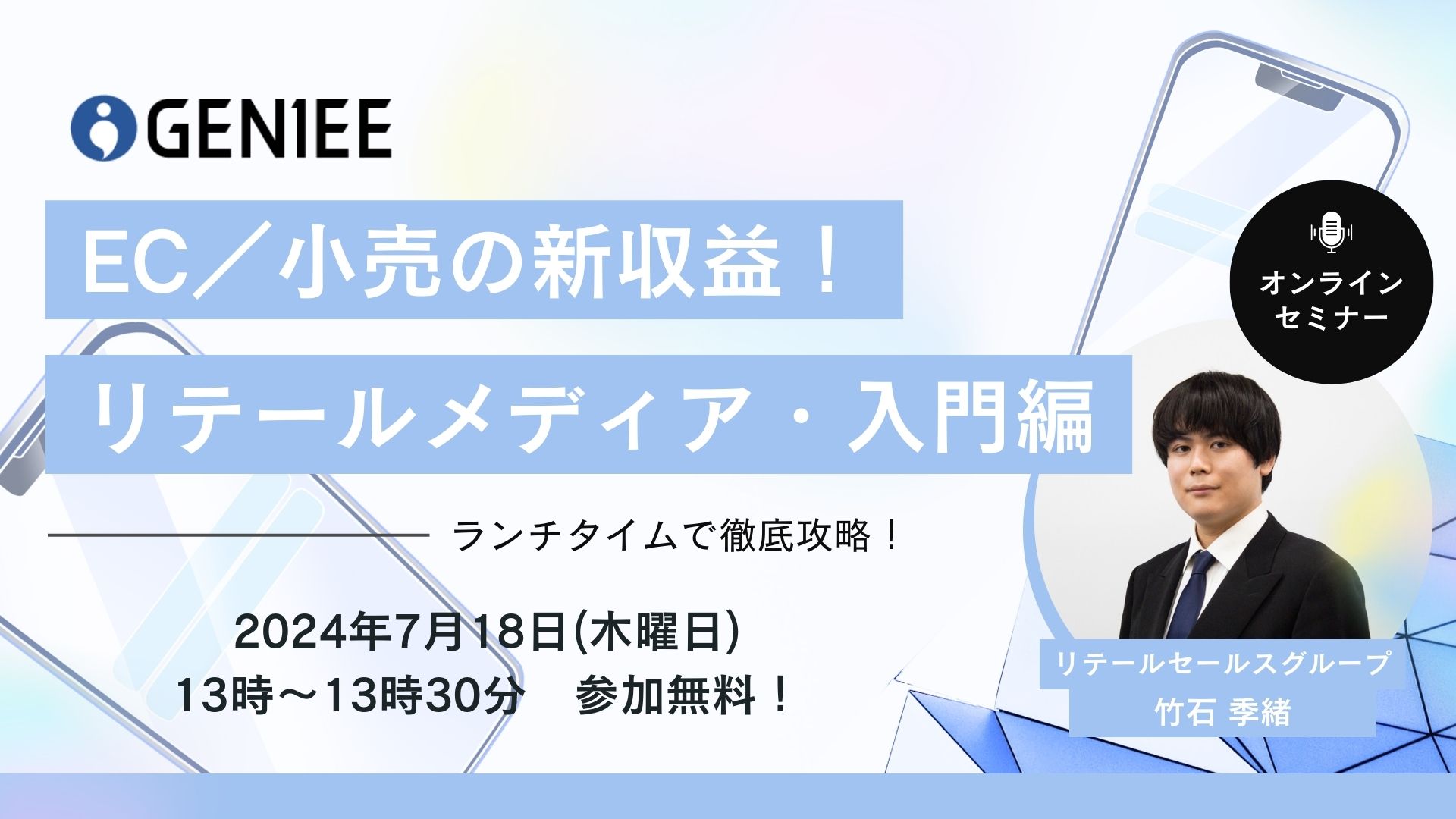 株式会社ジーニーマーケティングクラウド統括本部は、2024年7月18日(木)に、無料オンラインセミナーEC/小売の新収益!リテールメディア・入門編」を開催します。