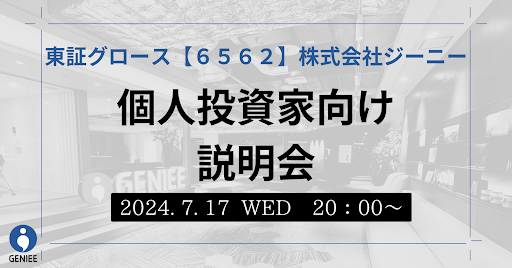 株式会社ジーニーは2024年7月17日(水)に、個人投資家向けの会社説明会を開催します。
