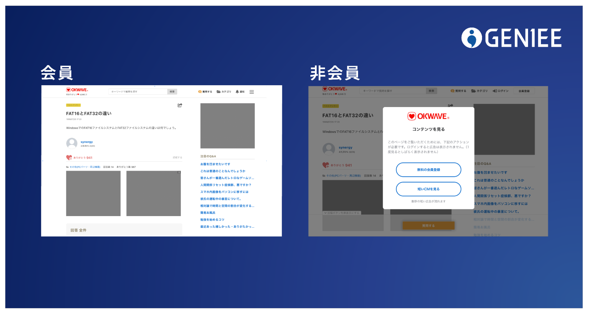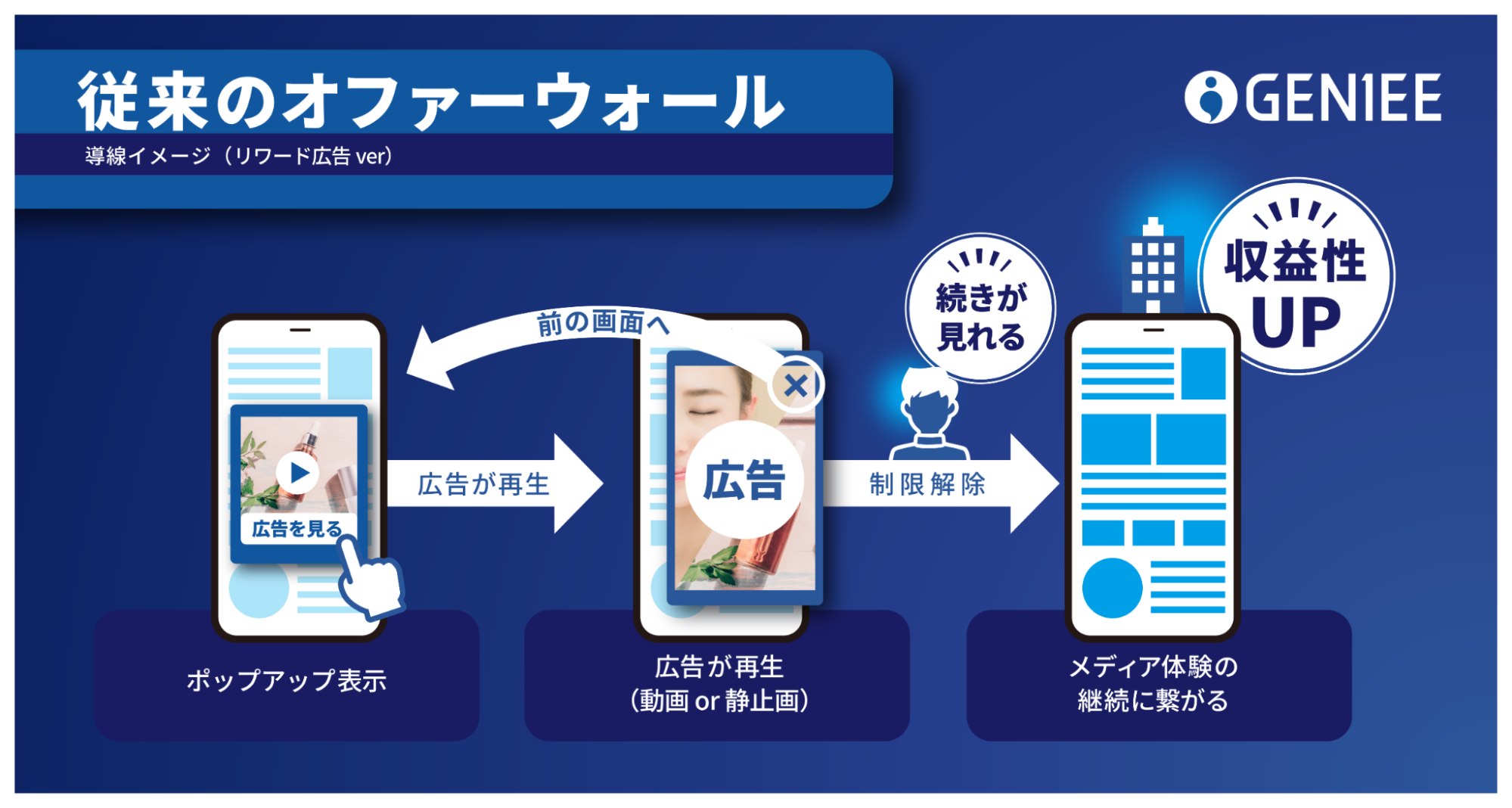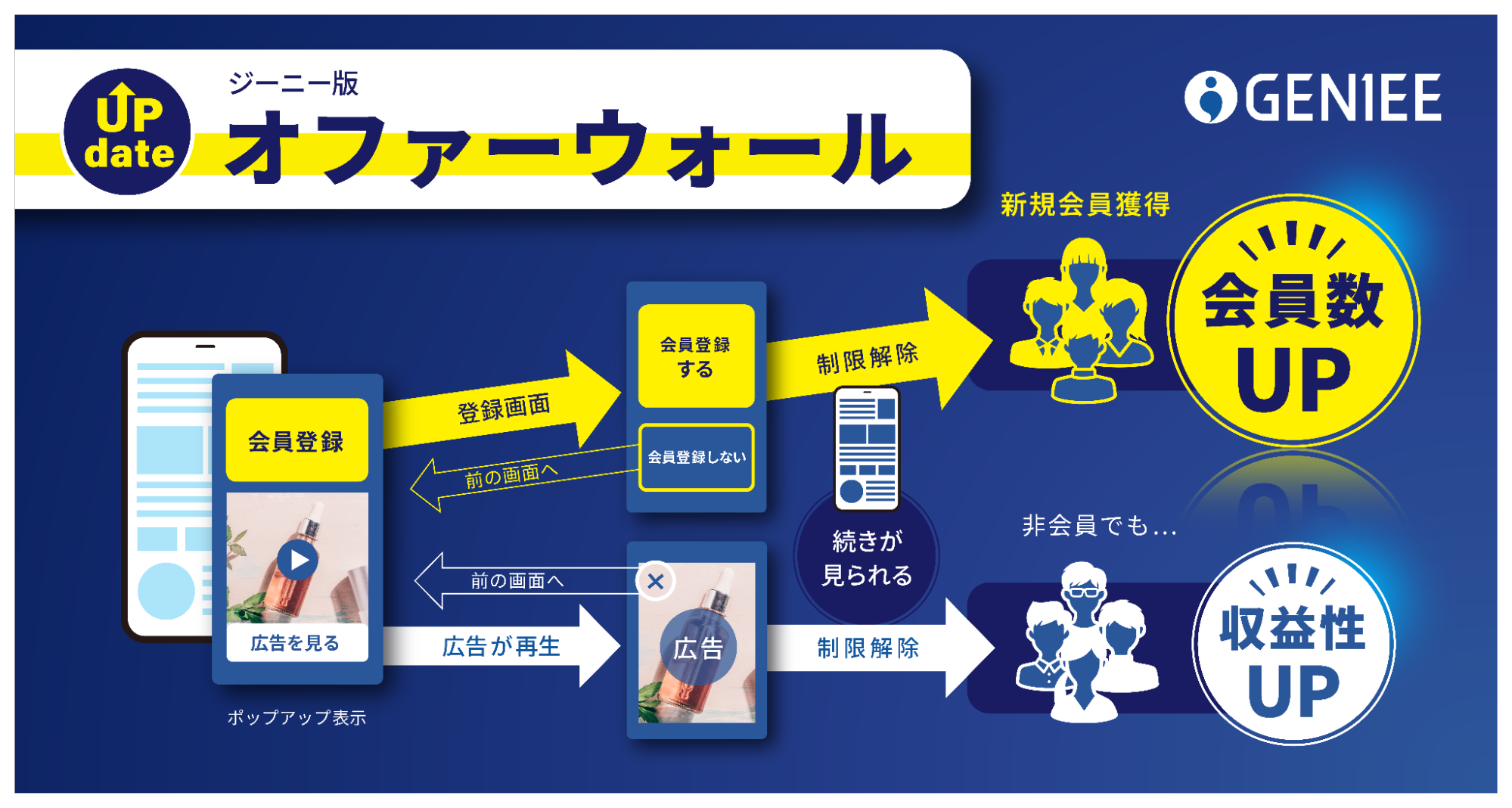 ジーニーは、プライバシー保護が強化されるCookieレス時代においても、各社が各種サイトの会員化によるロイヤリティ向上や収益化を実現できるよう、2023年11月にジーニー版オファーウォールを提供開始しました。この広告フォーマットは、オウケイウェイヴから会員化促進、収益力強化を実現できるソリューションとして、ジーニー版オファーウォールをご評価いただきました。