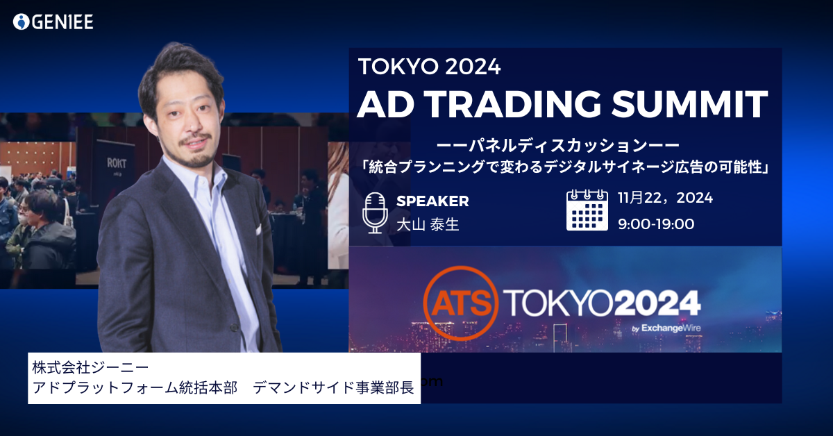 株式会社ジーニー(本社:東京都新宿区、代表取締役社長:工藤智昭、以下ジーニー)は、2024年11月22日(金)に開催される「Ad Trading Summit(ATS) Tokyo 2024」に登壇します。
