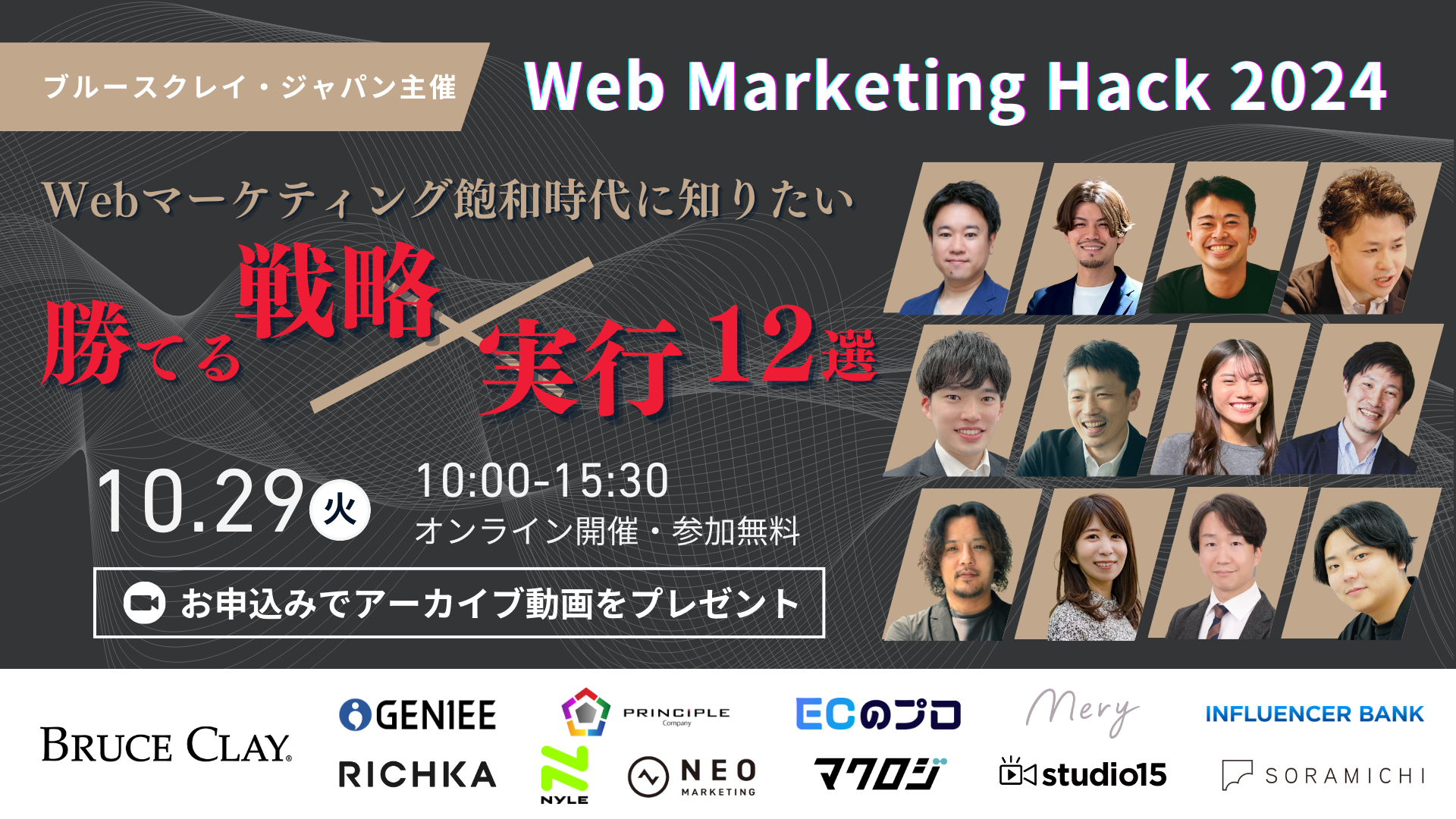 株式会社ジーニー GENIEE CXプラットフォーム本部は、10月29日(火)に開催されるオンラインカンファレンス「【ブルースクレイ主催】Web Marketing Hack 2024 Webマーケティング飽和時代に知りたい”勝てる”戦略×実行12選!」(主催:ブルースクレイ・ジャパン株式会社)に登壇します。