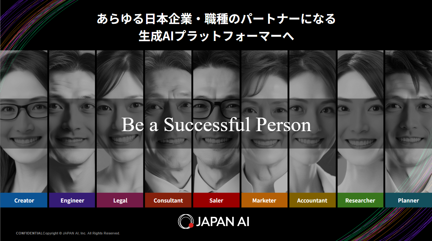 したがって、これまで開発してきた「JAPAN AI CHAT」「JAPAN AI SPEECH」「JAPAN AI SALES&MARKETING」といった各種生成AI機能の開発を強化しつつ、「JAPAN AI AGENT」開発の両輪を回すことにより、『AIで持続可能な未来の社会を創る』ことに邁進して参ります。