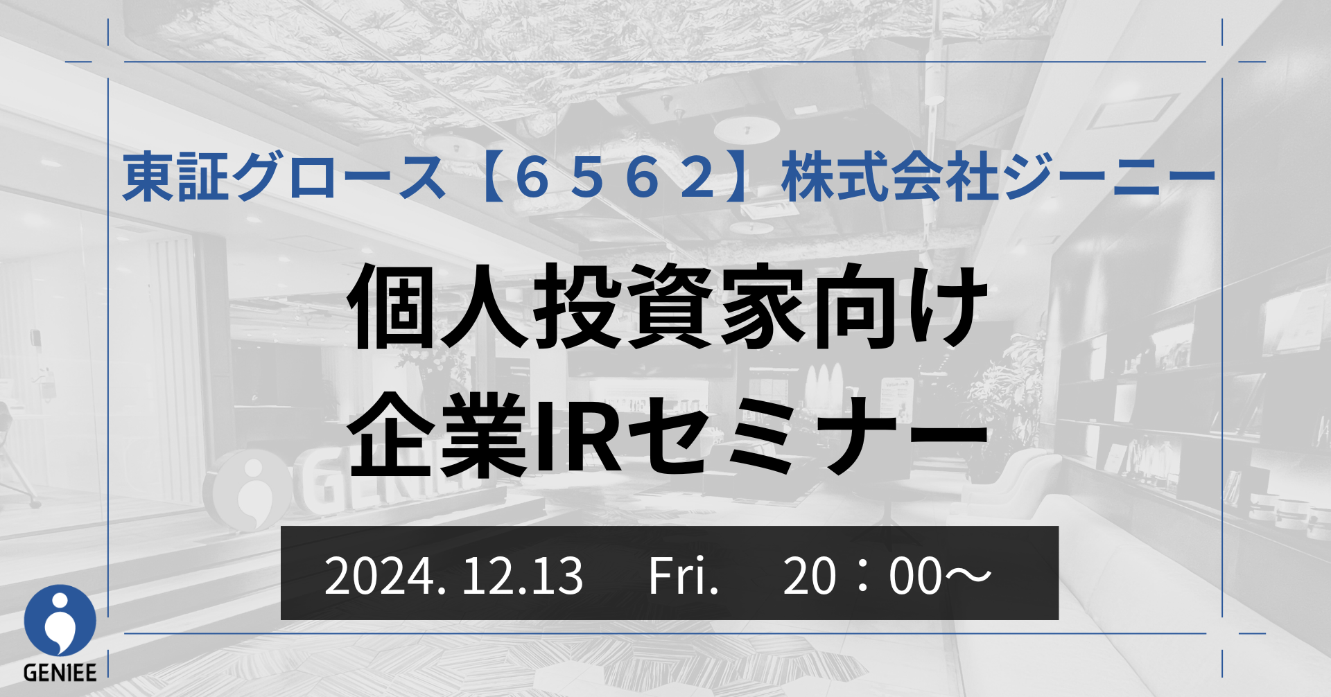 株式会社ジーニーは2024年12月13日(金) に、個人投資家向け企業IRセミナーを開催します。