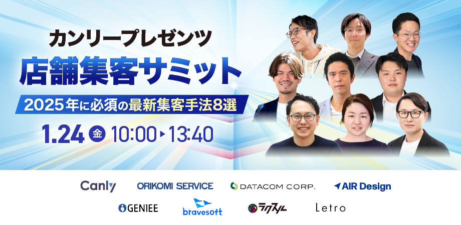 本サミットでは、2025年の店舗集客に欠かせない「勝利メソッド」を8つ厳選してご紹介。