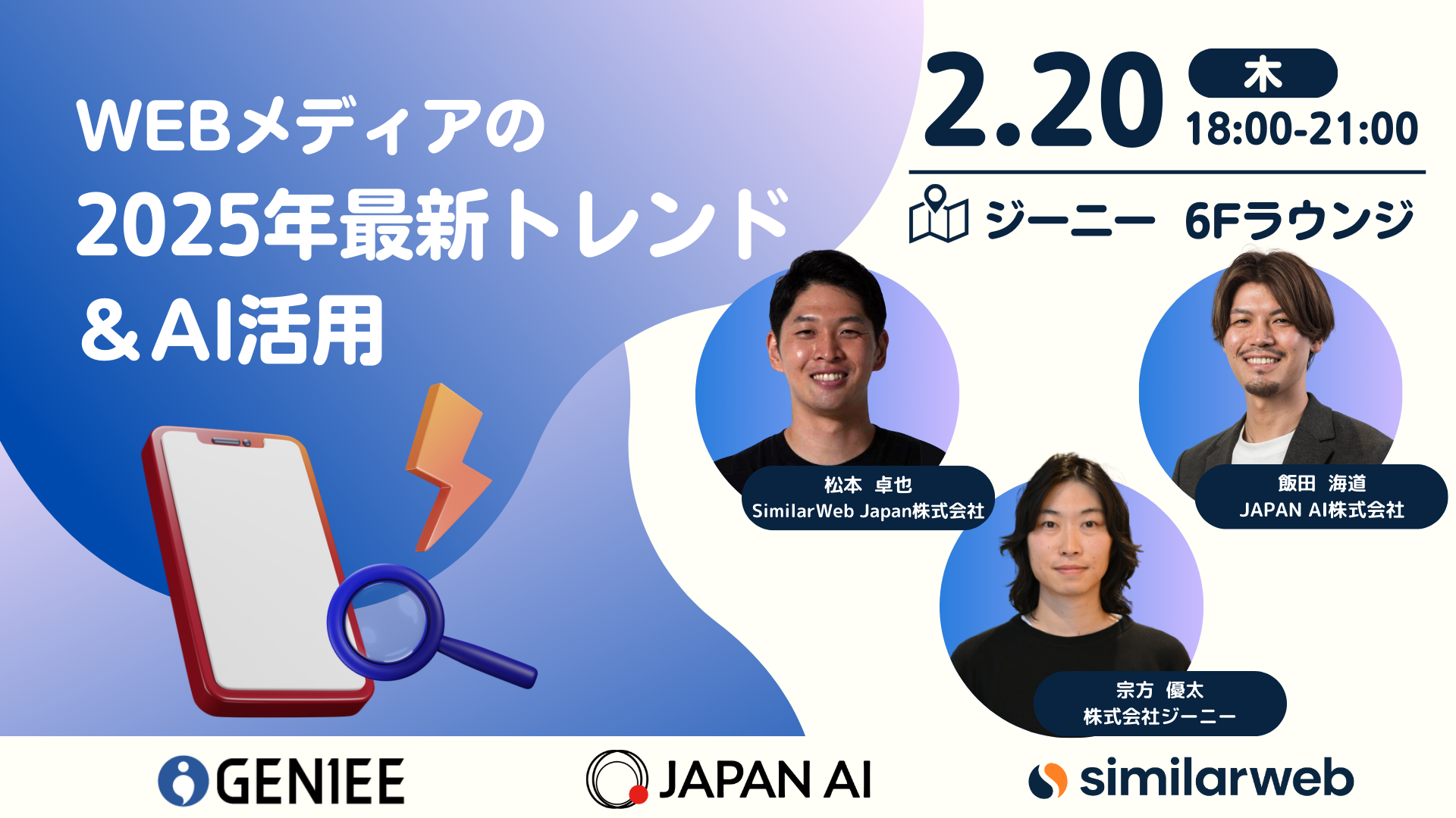株式会社ジーニー サプライサイド事業統括本部は、2025年2月20日(木)にジーニーラウンジにて無料オフラインセミナーを開催します。