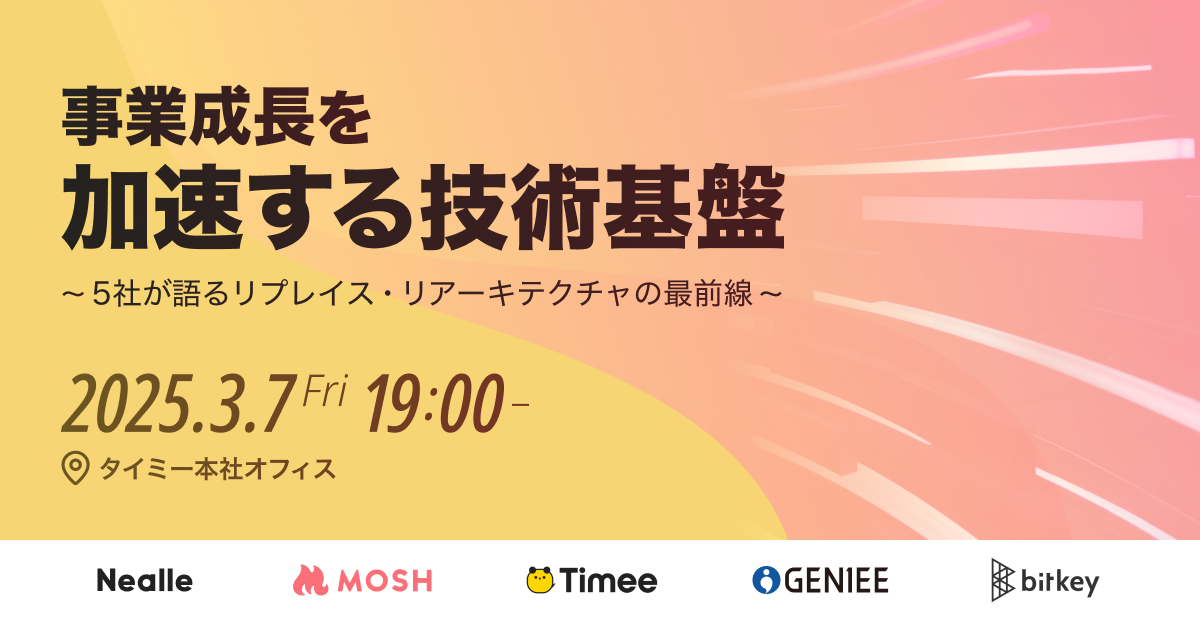 株式会社ジーニー は、2025年3月7日(金)に開催されるエンジニア向けオフラインセミナー「事業成長を加速する技術基盤~5社が語るリプレイス・リアーキテクチャの最前線~」を共催します。