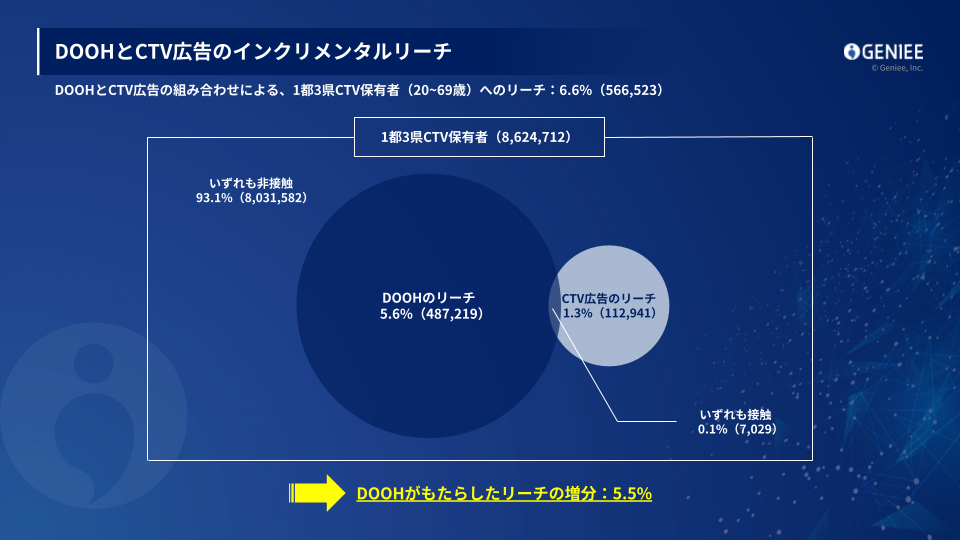 今回の検証では、DOOHとCTV広告を組み合わせて配信することでリーチが増加することが確認されました。