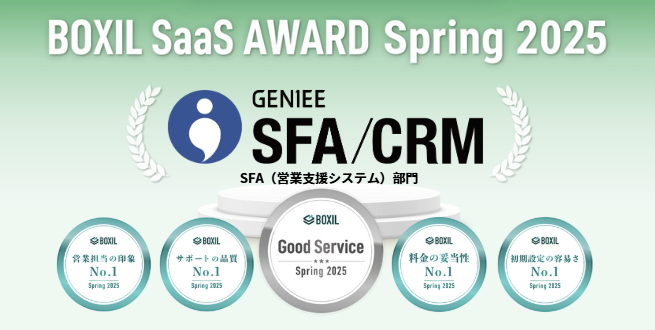 また、同日に発表された「BOXIL SaaS AWARD Spring 2025」のSFA(営業支援システム)部門では、5期連続で「Good Service」を受賞しました。