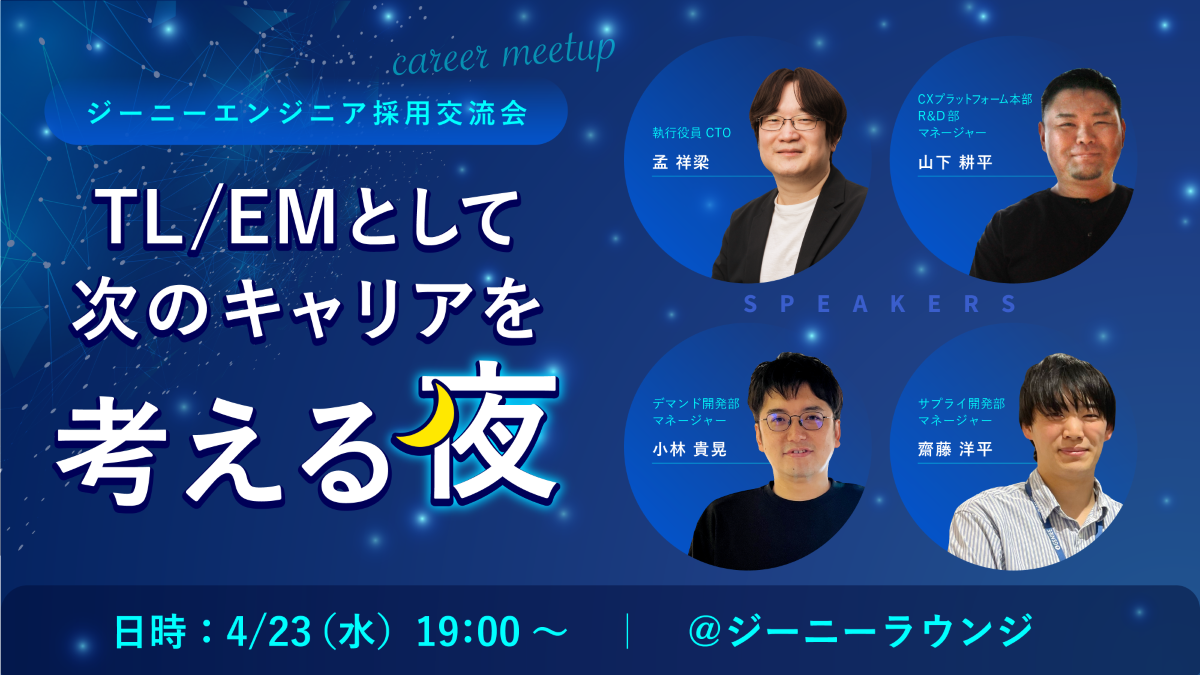 タイトル:ジーニーエンジニア採用交流会〜TL/EMとして、次のキャリアを考える夜