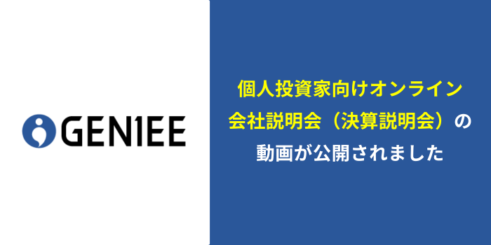 株式会社ジーニー主催 個人投資家向けオンライン会社説明会(決算説明会)