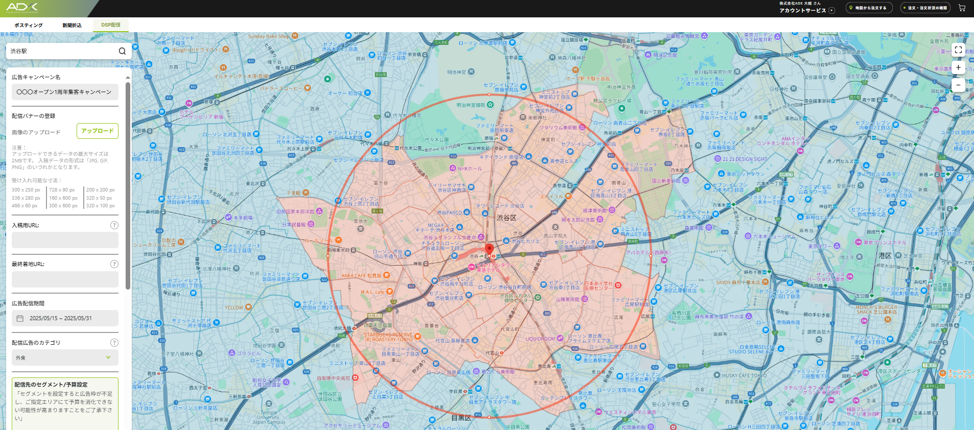 「ADX」のDSP発注画面