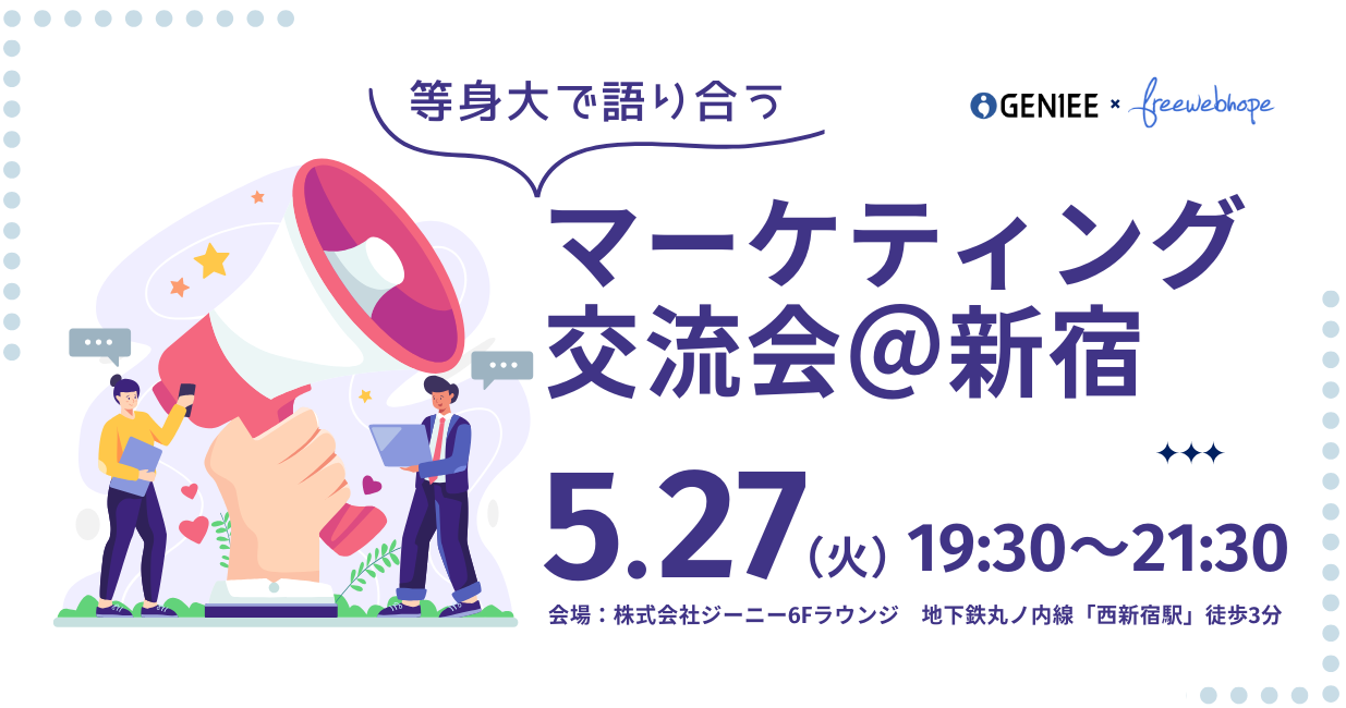 株式会社ジーニー CX事業統括本部 CVG事業部は、2025年5月27日(火)にオフラインイベント「等身大で語り合うマーケティング交流会」を開催します。