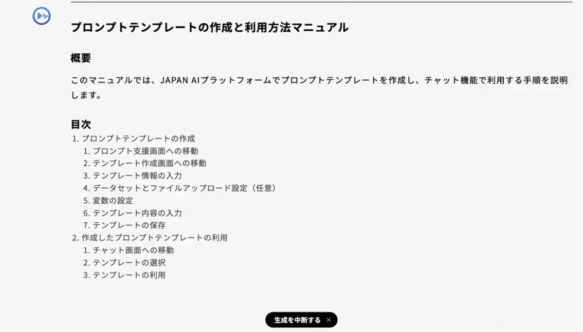 さらに「エージェント呼び出し機能」を活用し、「資料作成エージェント」を呼び出すことで、テキスト化したマニュアルを資料化することも可能になります。