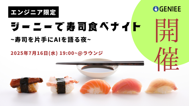 【お知らせ】ジーニーラウンジにて、エンジニア向けLT会「ジーニーで寿司食べナイト寿司を片手にAIを語る夜~」を開催します