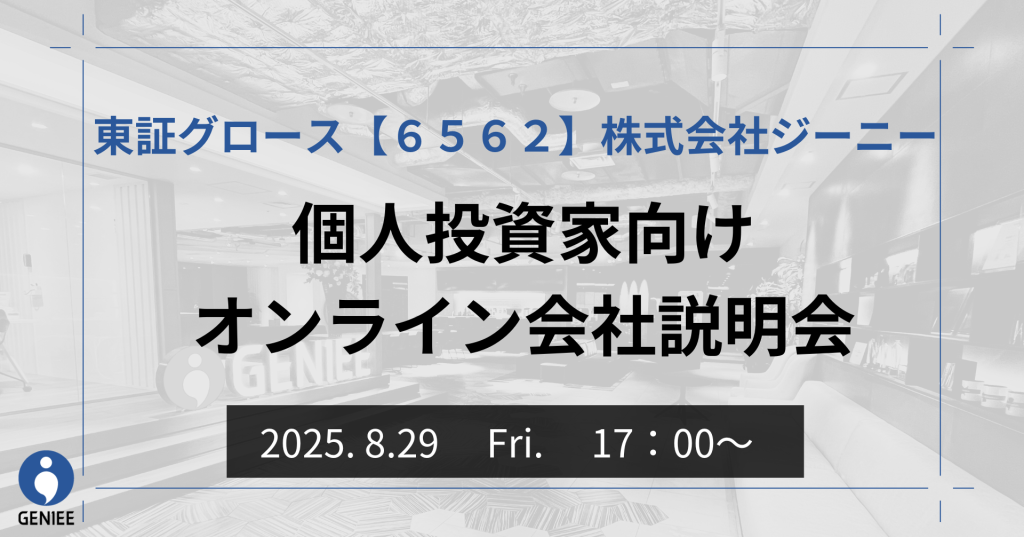 株式会社ジーニー(以下、ジーニー)は、2025年8月29日(金) に個人投資家向けオンライン会社説明会(決算説明会)を開催します。