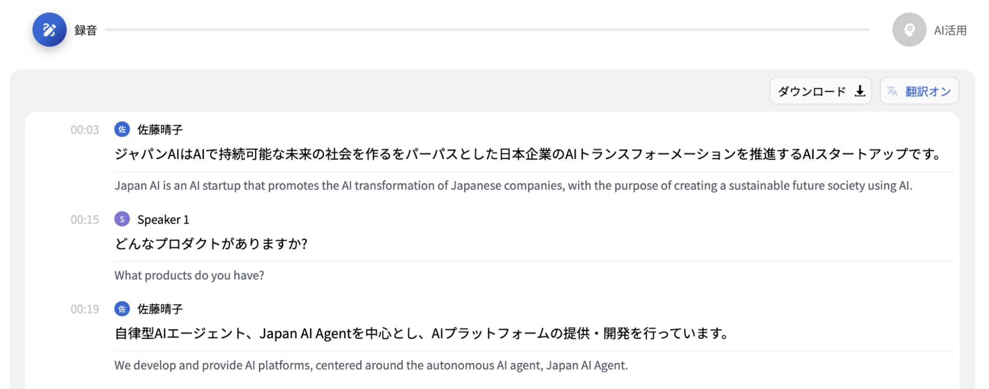 株式会社ジーニー(本社:東京都新宿区、代表取締役社長:工藤 智昭、以下ジーニー)のグループ会社である、AIを活用したプロダクト開発・販売を行うJAPAN AI株式会社(本社:東京都新宿区、代表取締役社長:工藤 智昭、以下JAPAN AI)は、提供するAI議事録サービス「JAPAN AI SPEECH」にリアルタイム翻訳機能を実装したことをお知らせいたします。