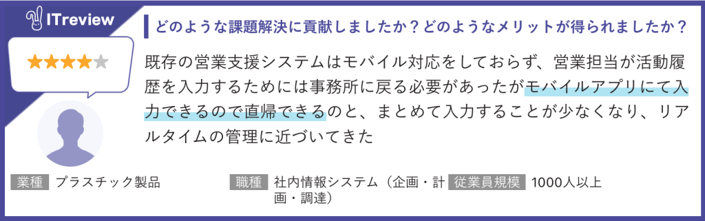 モバイルアプリでその場で入力、リアルタイム管理へ。営業業務の効率化と精度向上に貢献