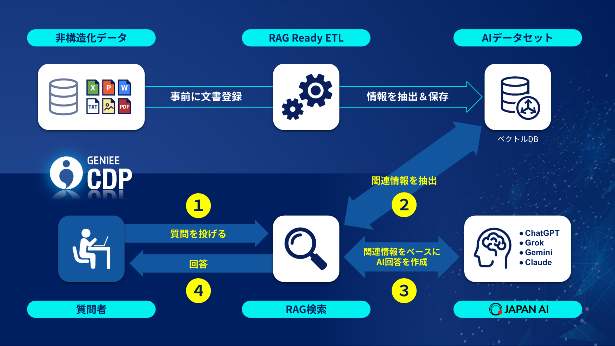 今後もジーニーは、主要なデータ管理システムや業務アプリケーションとの連携を強化し、導入支援と多言語・業種特化対応を拡充することで、企業におけるAI活用の実用化を加速します。