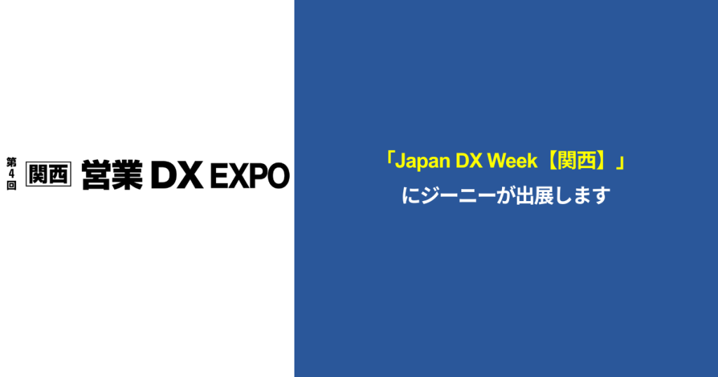 株式会社ジーニー(本社:東京都新宿区、代表取締役社長:工藤 智昭、以下ジーニー)は、2025年11月19日(水)~21日(金)にインテックス大阪で開催される展示会「Japan DX Week【関西】」の「営業DX EXPO」(主催:RX Japan株式会社)に出展します。